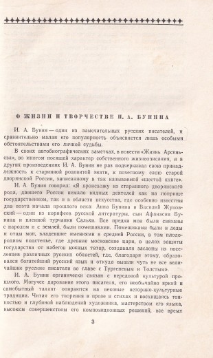 И.А. Бунин — признанный мастер русской реалистической прозы, поэт, переводчик, лауреат Нобелевской премии по литературе 1933 года. Его творческое наследие весьма многообразно, сегодня мы речь пойдет о книге, опубликованной в 1956 году Государственным издательством «Художественная литература». Тканевый переплёт и титульный лист в графическом стиле оформил художник М. Митурич. На авантитуле фотопортрет Ивана Бунина. Иллюстрации в книге отсутствуют, только чёрно-белые узоры-виньетки перед началом каждого произведения делают книгу более легкой и компактной. Сборник открывает вступительная статья советского критика, литературоведа Анатолия Тарасенкова о жизни и творчестве автора. В примечаниях указаны даты первых публикаций, вошедшие в данное издание, созданные автором с 1892 по 1944 годы, дата создания каждого произведения указана после текста.