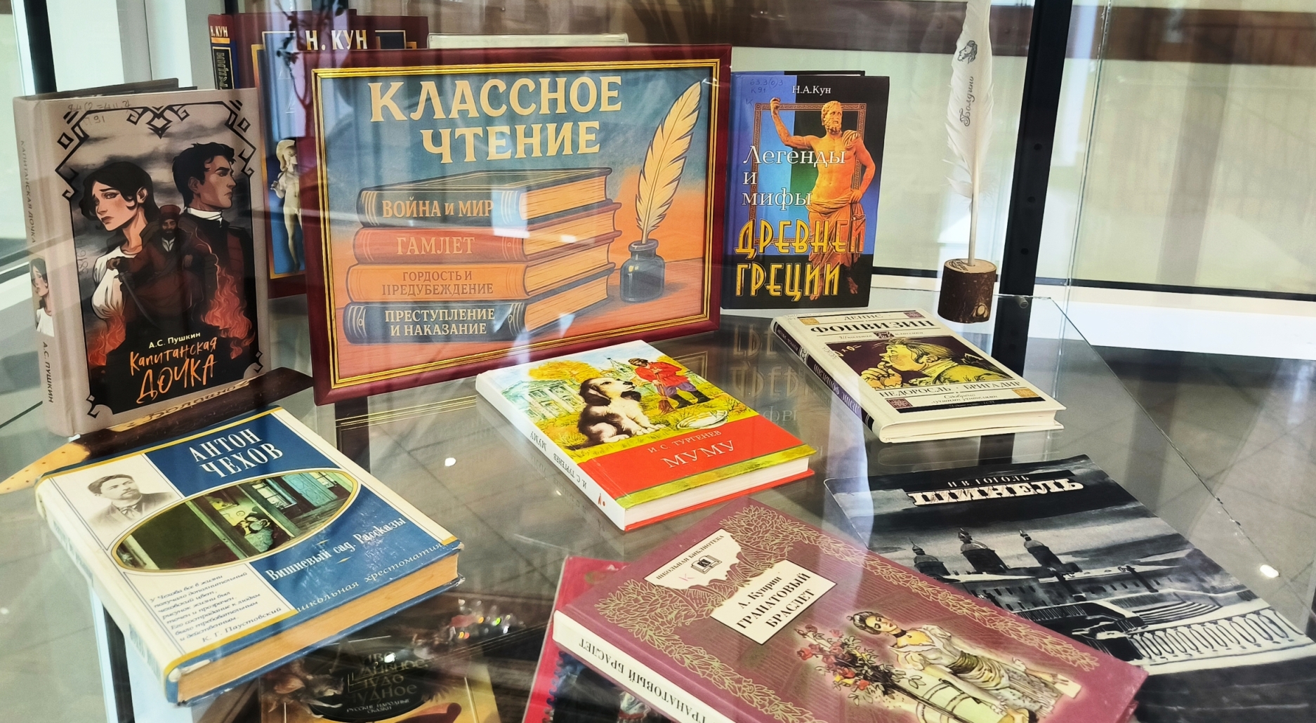 В рамках всероссийской акции «Культурный марафон 2025: классическая литература глазами детей» в библиотеке оформлена книжная выставка-витрина «Классное чтение», ставшая настоящим праздником для любителей классической литературы.