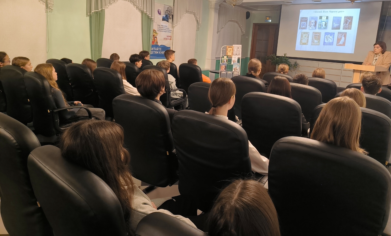 Юбилею писателя был посвящен медиачас «Добрые уроки грустной повести», который посетили учащихся 8 класса Политехнического лицея-интерната. Ребята узнали о жизненном и творческом пути Г.Н. Троепольского, познакомились с интересными фактами его биографии. Кадры мультимедийной презентации помогли проникнуться творчеством писателя и глубже понять идеи повести. Эмоциональное обсуждение повести привело учащихся к выводу о необходимости бережного отношения к животным, важности сострадания и понимания, верности своим принципам и друзьям, несмотря ни на какие жизненные трудности. Медиачас стал не просто напоминанием о творчестве писателя, но и поводом задуматься о вечных ценностях, которые Гавриил Троепольский так мастерски воплотил в своей повести.