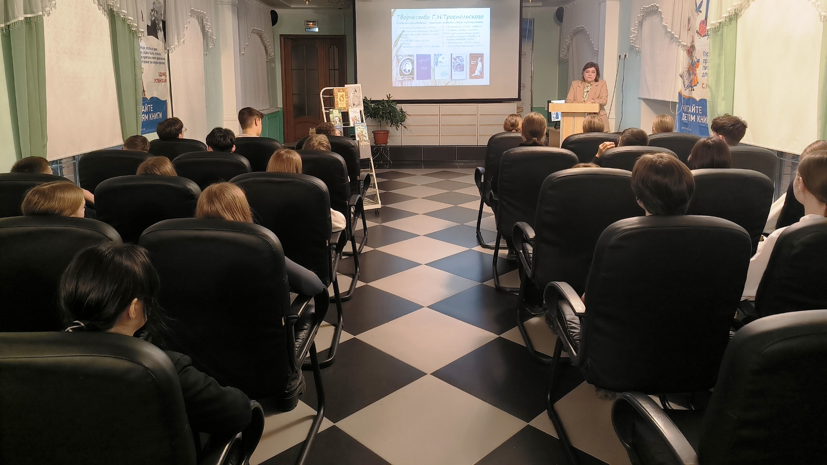 Юбилею писателя был посвящен медиачас «Добрые уроки грустной повести», который посетили учащихся 8 класса Политехнического лицея-интерната. Ребята узнали о жизненном и творческом пути Г.Н. Троепольского, познакомились с интересными фактами его биографии. Кадры мультимедийной презентации помогли проникнуться творчеством писателя и глубже понять идеи повести. Эмоциональное обсуждение повести привело учащихся к выводу о необходимости бережного отношения к животным, важности сострадания и понимания, верности своим принципам и друзьям, несмотря ни на какие жизненные трудности. Медиачас стал не просто напоминанием о творчестве писателя, но и поводом задуматься о вечных ценностях, которые Гавриил Троепольский так мастерски воплотил в своей повести.