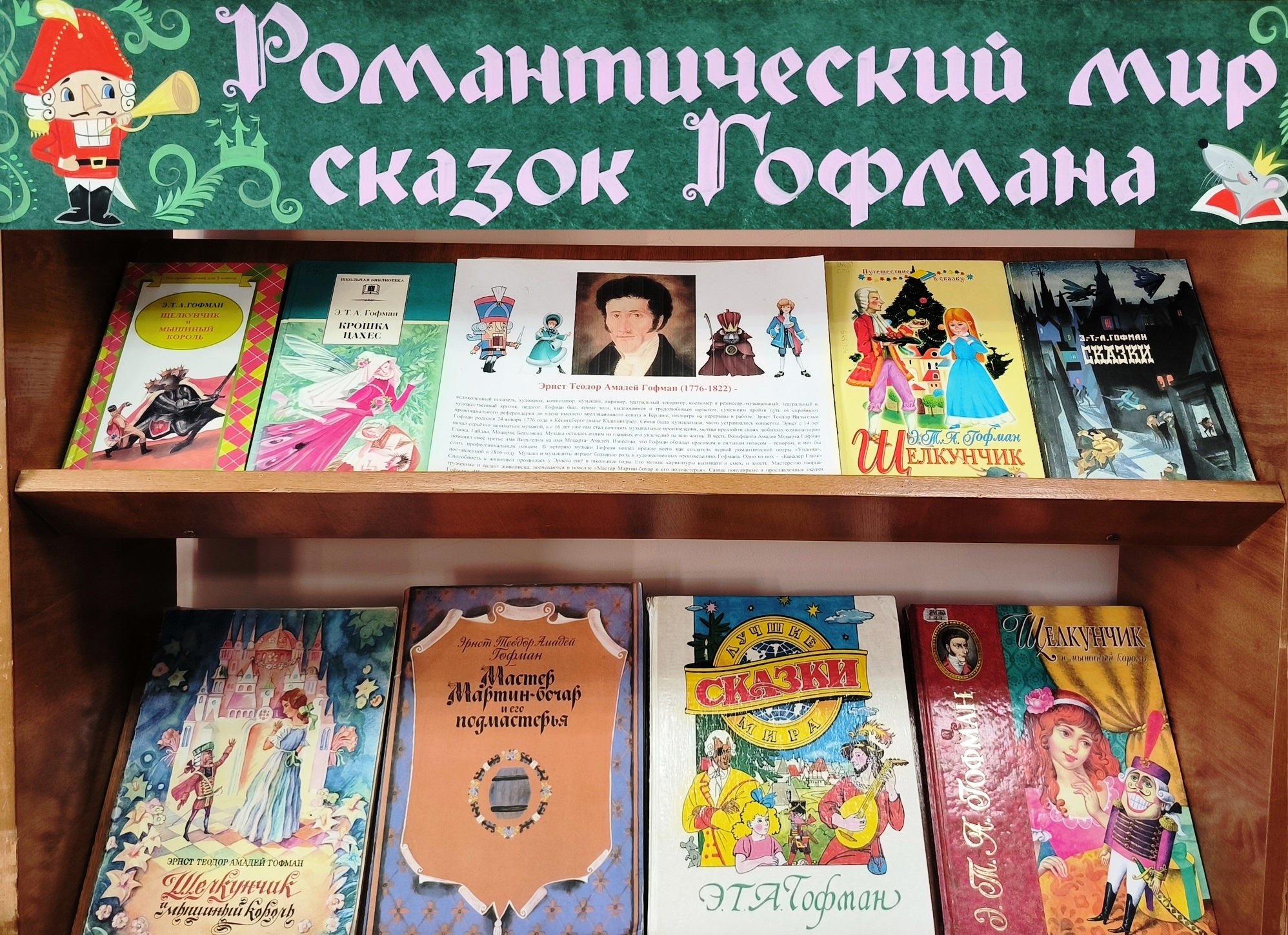 250-летию со дня рождения Э.Т.А. Гофмана посвящена книжно- иллюстративная выставка «Романтический мир сказок Гофмана», организованная в зале обслуживания 1-6 классов.