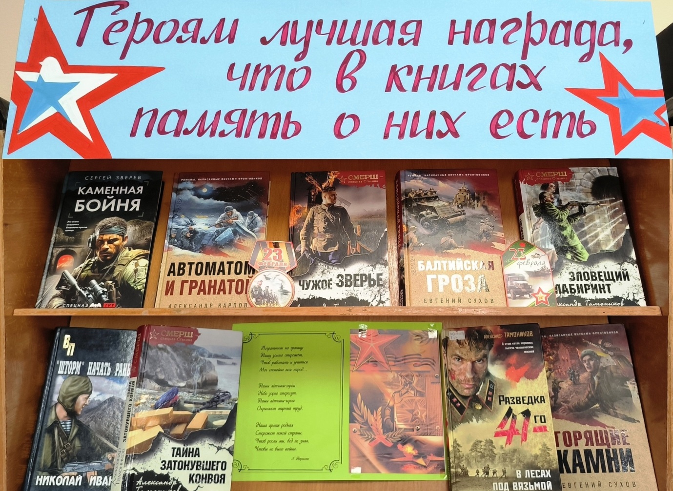 Дню защитника Отечества посвящена книжно — иллюстративная выставка «Героям лучшая награда, что в книгах память о них есть», оформленная в отделе художественной литературы и искусств.