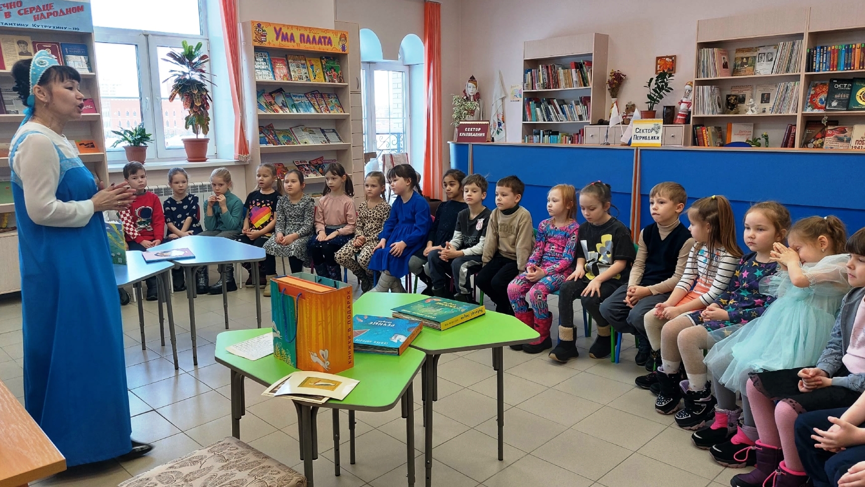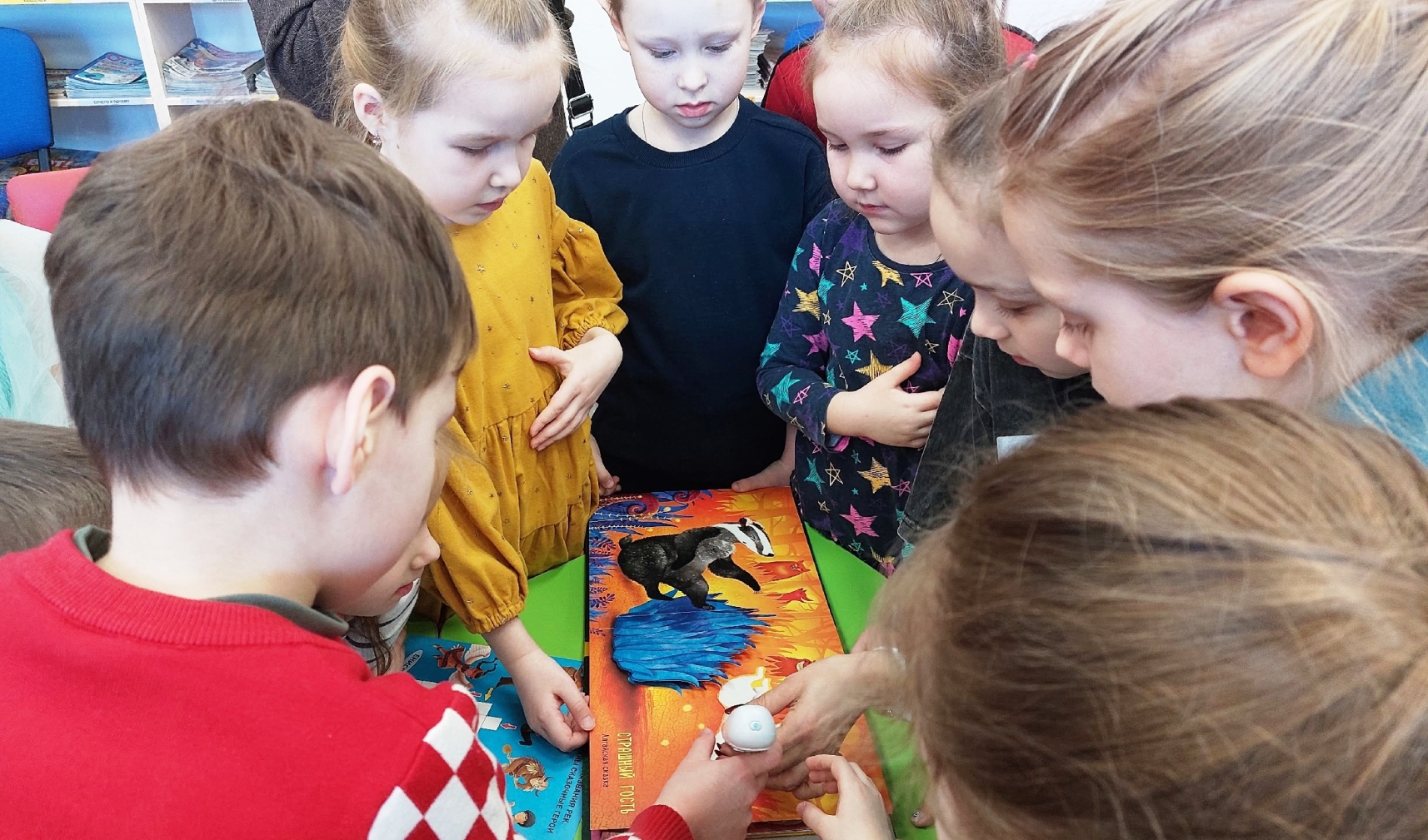 Малыши стали участниками костюмированного литературного праздника «Сказки народов России», который знакомил с устным народным творчеством русских, мари, чувашей, татар, удмуртов и других народностей. Особенный восторг у малышей вызвал мастер — класс по работе с «волшебным карандашом» из комплекта живых книг «Сказки народов России» и песочная анимация по мотивам марийской народной сказки «Белая лебедушка».