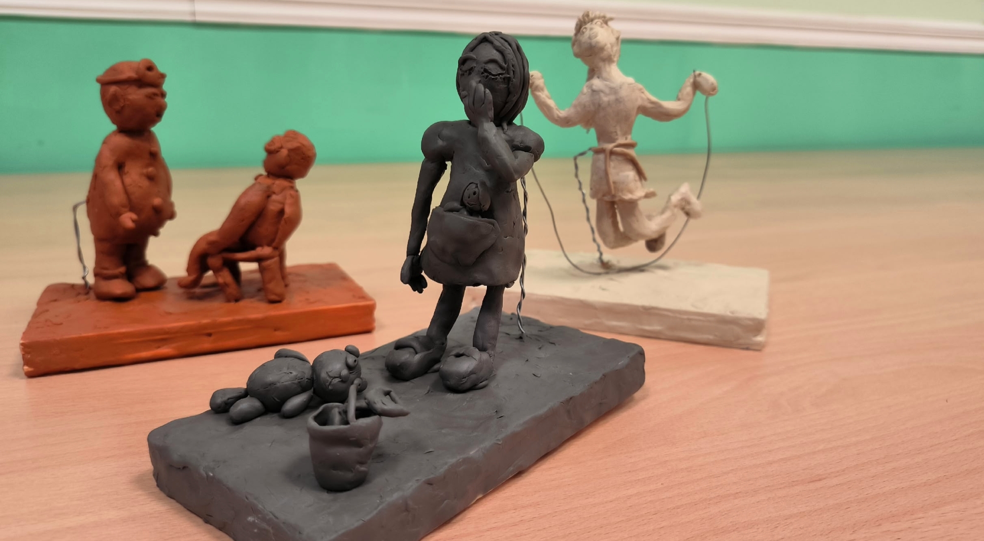 На выставке «Поучительные уроки А. Барто» представлены не только рисунки, но и работы, выполненные в самых разных техниках: от простых, но трогательных поделок в технике пластилинографии, до сложных объемных композиций.