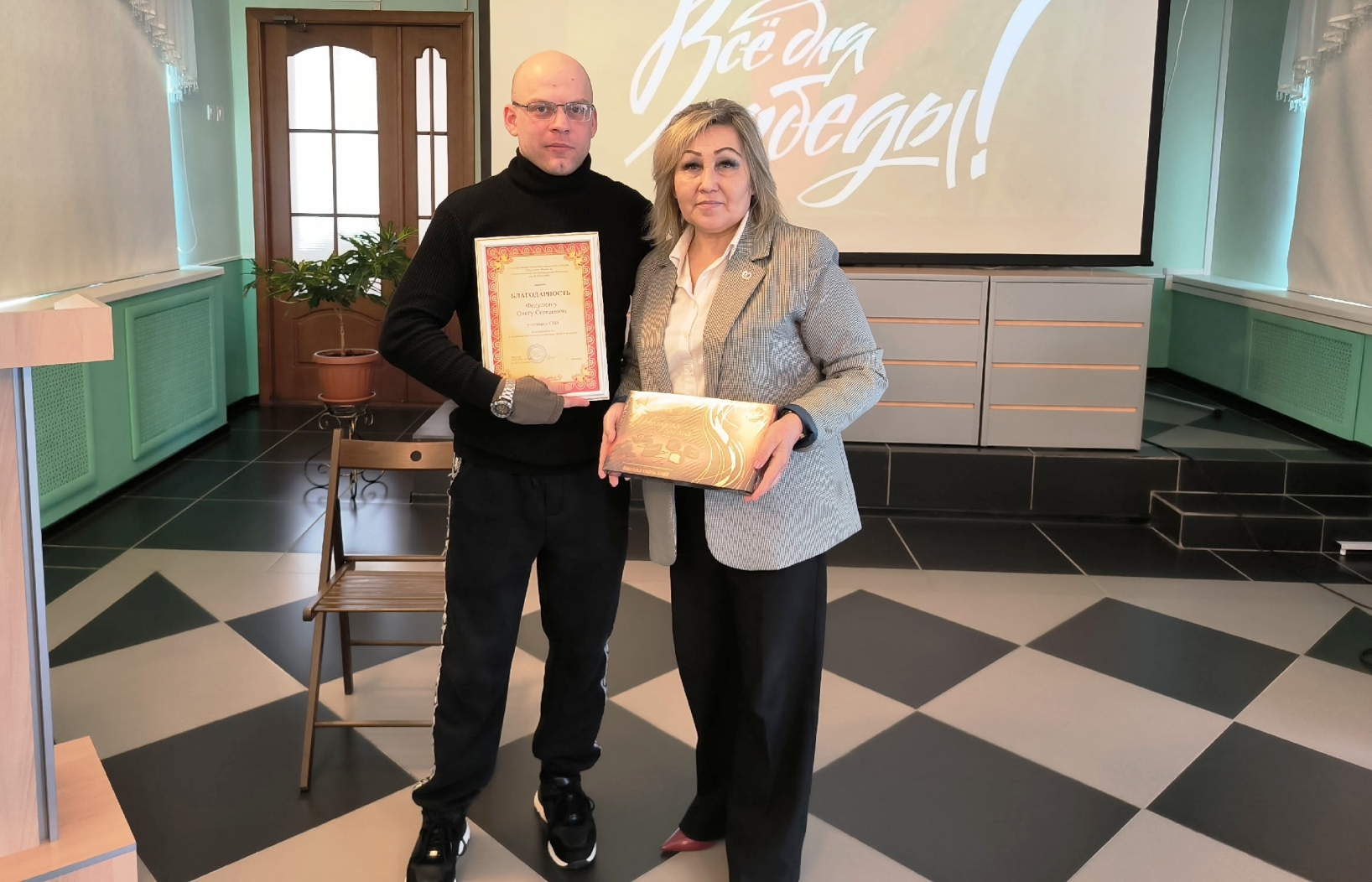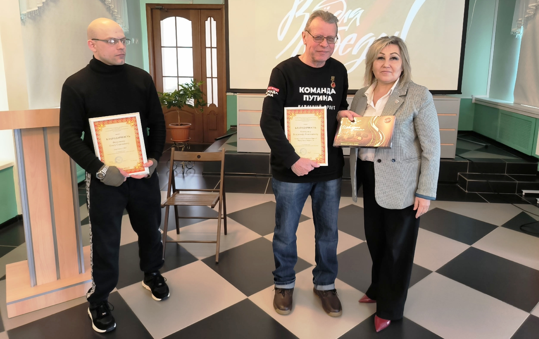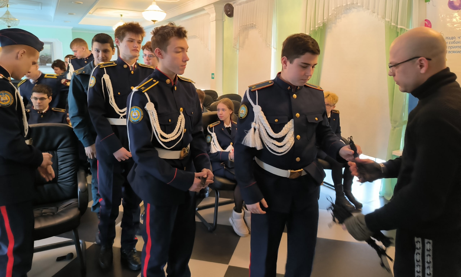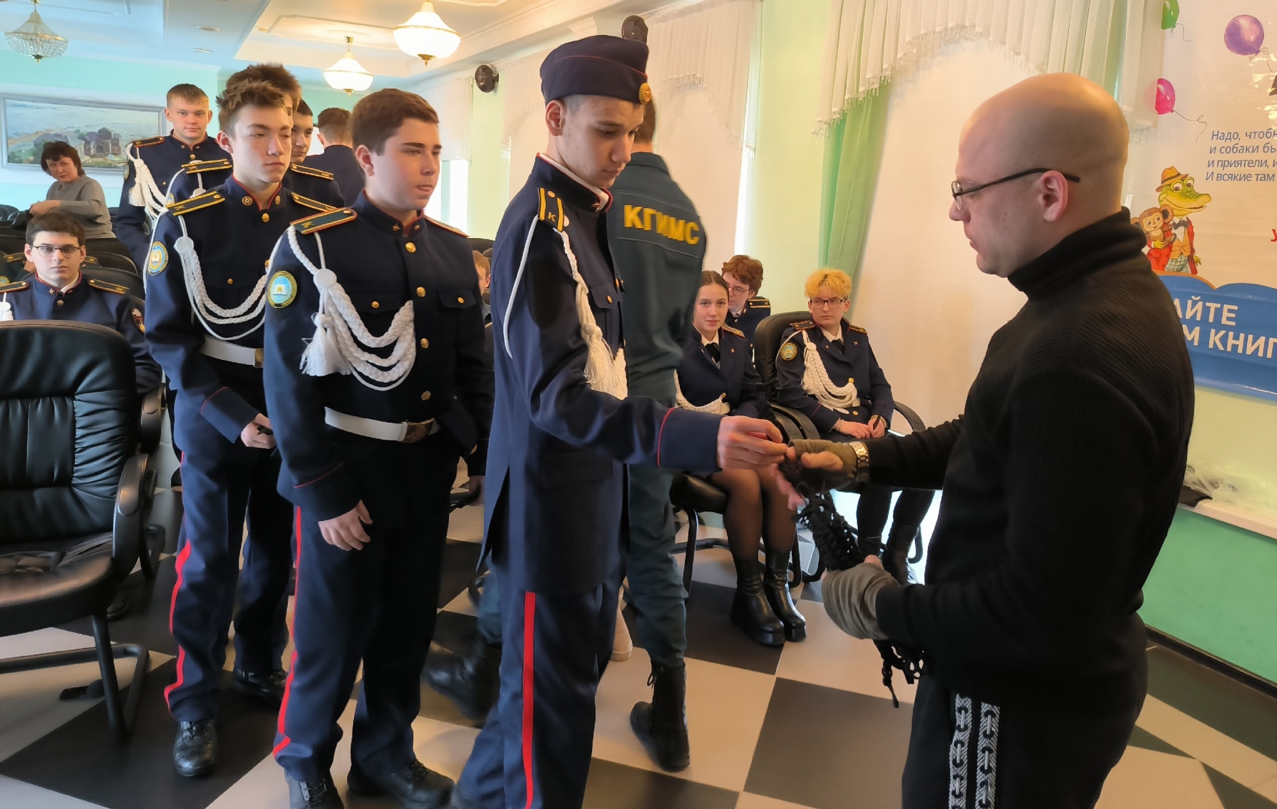 Сегодня браслеты, сплетенные руками студентов, были переданы ветерану Специальной военной операции на территории Украины Олегу Сергеевичу Федулкину, который отправит их в составе гуманитарного конвоя нашим бойцам, как символ нашей веры в Победу и надежды на их скорейшее возвращение домой.