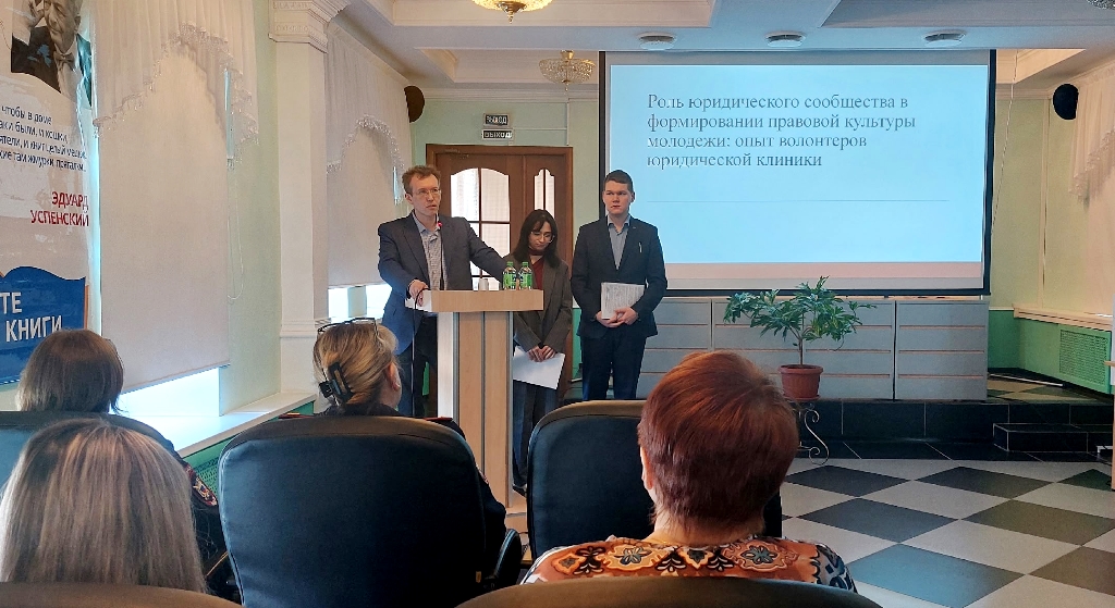 Вниманию участников круглого стола был представлен опыт деятельности юридической клиники юридического факультета ФГБОУ ВО «Марийский государственный университет» по формированию правовой культуры подростков и молодежи.