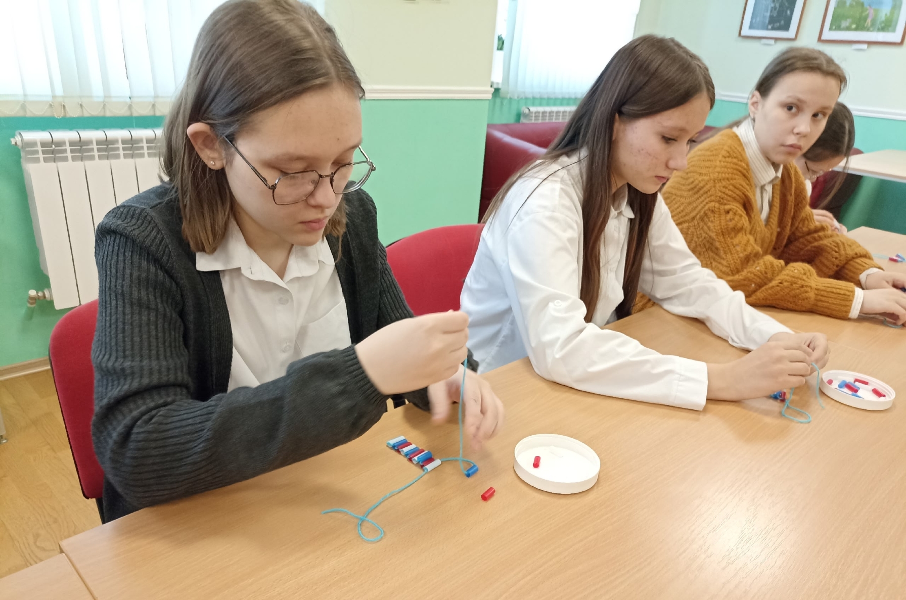В качестве основного материала были выбраны обычные коктейльные трубочки – яркие, легкие и, казалось бы, совершенно непригодные для чего-то большего, чем одноразовое использование. Ребятам раздали отрезки трубочек трех цветов: белого, синего и красного, символизирующих цвета российского флага. Задача стояла увлекательная – сплести из этих разноцветных элементов настоящие браслеты. Используя прочные нитки, школьники аккуратно нанизывали на них отрезки трубочек, следуя определенной последовательности. Ребята не просто создавали изделие своими руками, но и учились видеть потенциал в вещах, которые привыкли считать мусором.