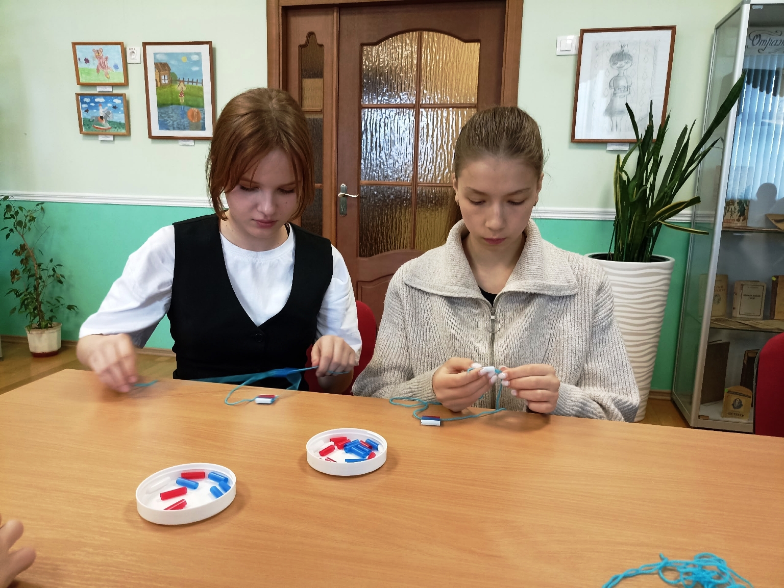 В рамках Общероссийских дней защиты окружающей среды от экологической опасности в библиотеке прошел необычный мастер-класс – плетение браслетов «Триколор».