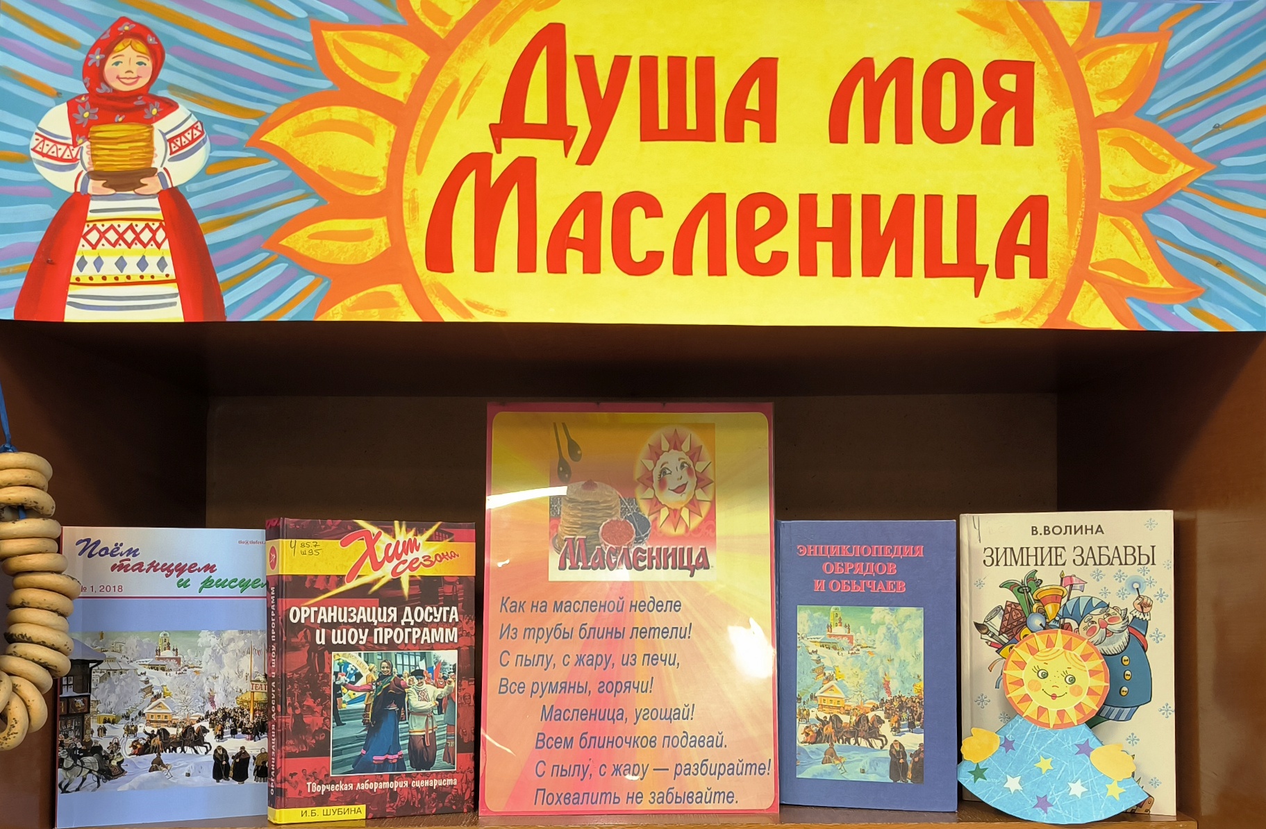 На книжно — иллюстративной выставке-викторине «Душа моя Масленица» представлена не только литература о традициях этого праздника, но тематическая викторина, которая порадует интересными, но каверзными вопросами. Впрочем, ответы на них можно найти в предложенной подборке книг. Вы узнаете, почему понедельник называют «встречей», а воскресенье — «прощёным днём», почему блины стали главным угощением и что они символизируют. Заводилам и любителям устроить праздники адресованы сценарии народных гуляний, обрядов и игр, которые принято проводить в разные дни Масленицы. Выставка проиллюстрирована репродукциями картин известных художников, которые помогут живо представить, как проходили Масленичные гуляния в далеком в прошлом.